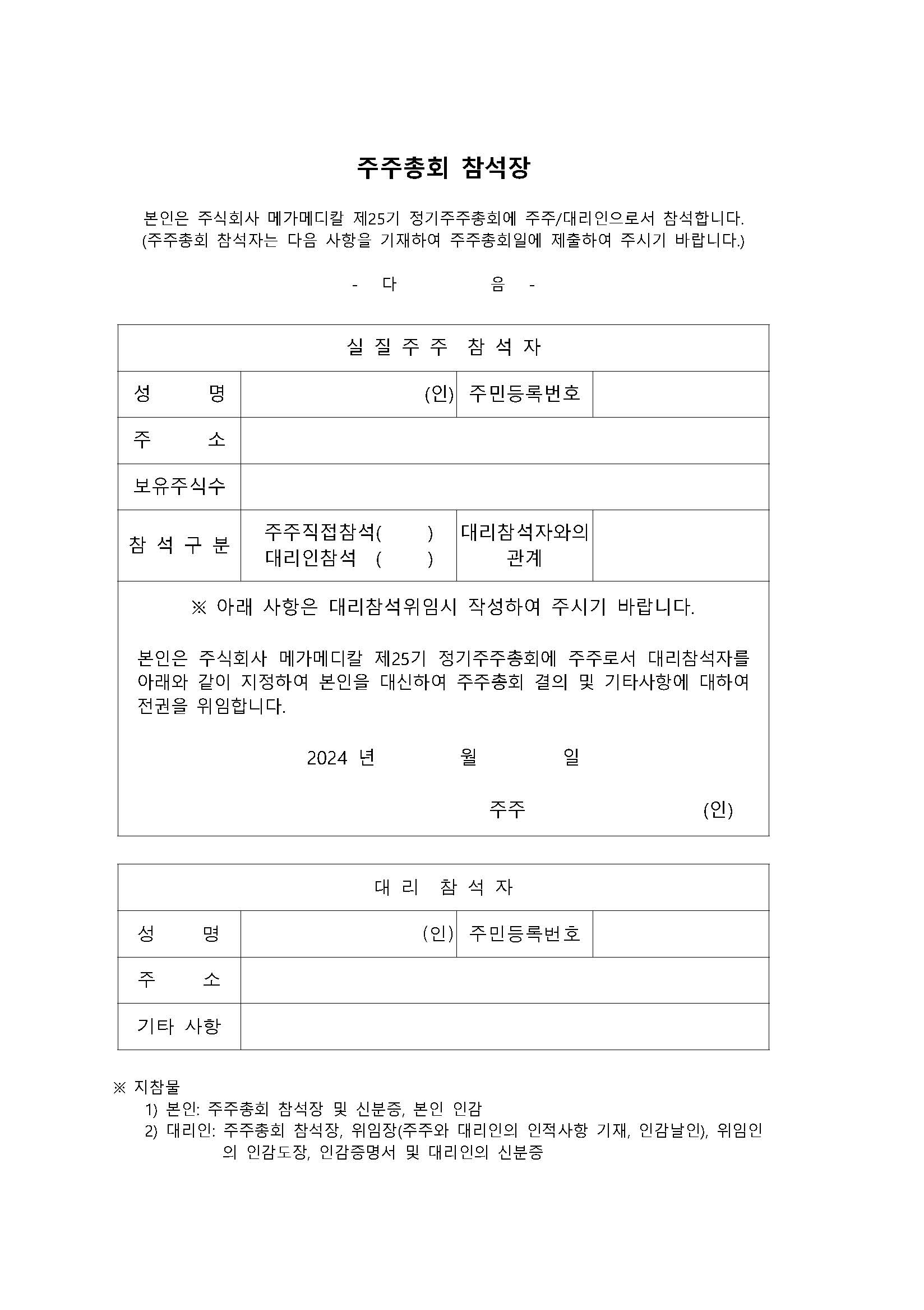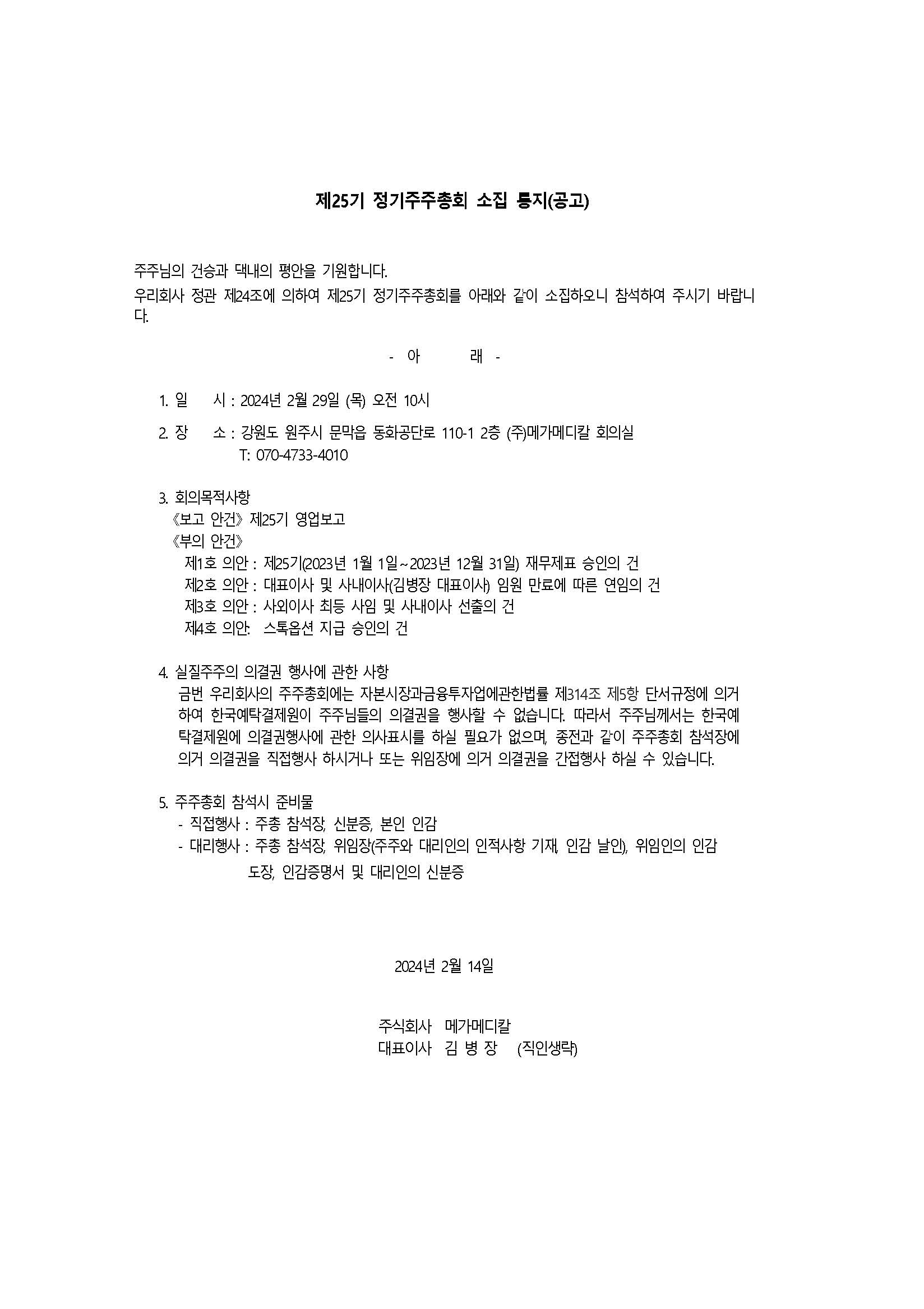 2. 장 소 : 강원특별자치도 원주시 문막읍 동화공단로 110-1 2층 (주)메가메디칼 회의실