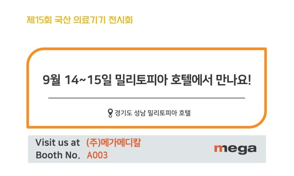 행사 : 제15회 국산 의료기기 전시회 장소 : 경기도 성남 밀리토피아 호텔 일시 : 2023.09.14 ~2023.09.15 부스번호 : Booth No. A003 링크 : https://afmc2023.kr/M5Z2CCeGZY1692274579617s5Qp78dMH?page=1&lastRowNum=0&language=ko 주최: 국군의사령부