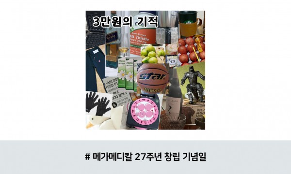 행사 : 메가메디칼 창립기념일 장소 : 본사 일시 : 2022.12.12 부스번호 : N/A 링크 : N/A 지난 12월 12일은 메가메디칼의 창립 27주년이었습니다. 벌써 27주년이라니, 시간이 정말 빠르네요.메가 임직원들과 함께한 창립기념일 현장을 확인해보세요.