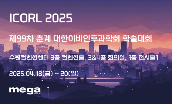 행사 : ICORL 2025 장소 : 수원컨벤션센터 일시 : 2025.04.18 ~ 2025.04.20 부스번호 : 부스 이미지 참고 링크 : https://korl.or.kr/workshop/2025spring/pro.html?tb_num=3 제99차 춘계 대한이비인후과학회 학술대회(ICORL 2025)에 참가하게 되었습니다!04월 18일부터 20일까지 '수원컨벤션센터'에서 만나요!감사합니다 :)