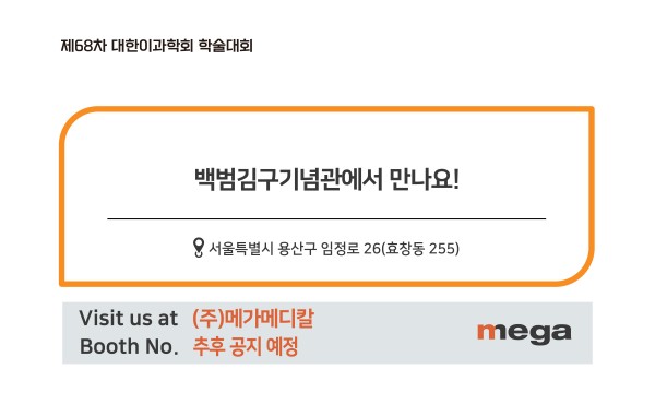 행사 : 제68차 대한이과학회 학술대회 장소 : 백범김구기념관 일시 : 2024.04.06 부스번호 : 추후 공지 예정 링크 : https://www.otologicalsociety.or.kr/abstract/2024_spring/ 제68차 대한이과학회 학술대회에 참가하게 되었습니다!04월 06일에 백범김구기념관에서 만나요!감사합니다 :)