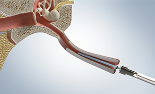 STEP 2: 이관 입구에 풍선카테터를 위치시킨 후, 풍선 컨트롤러를 전진시켜 풍선을 이관 내로 삽입합니다.