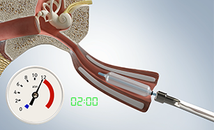 STEP 2: 이관 입구에 풍선카테터를 위치시킨 후, 풍선 컨트롤러를 전진시켜 풍선을 이관 내로 삽입합니다.